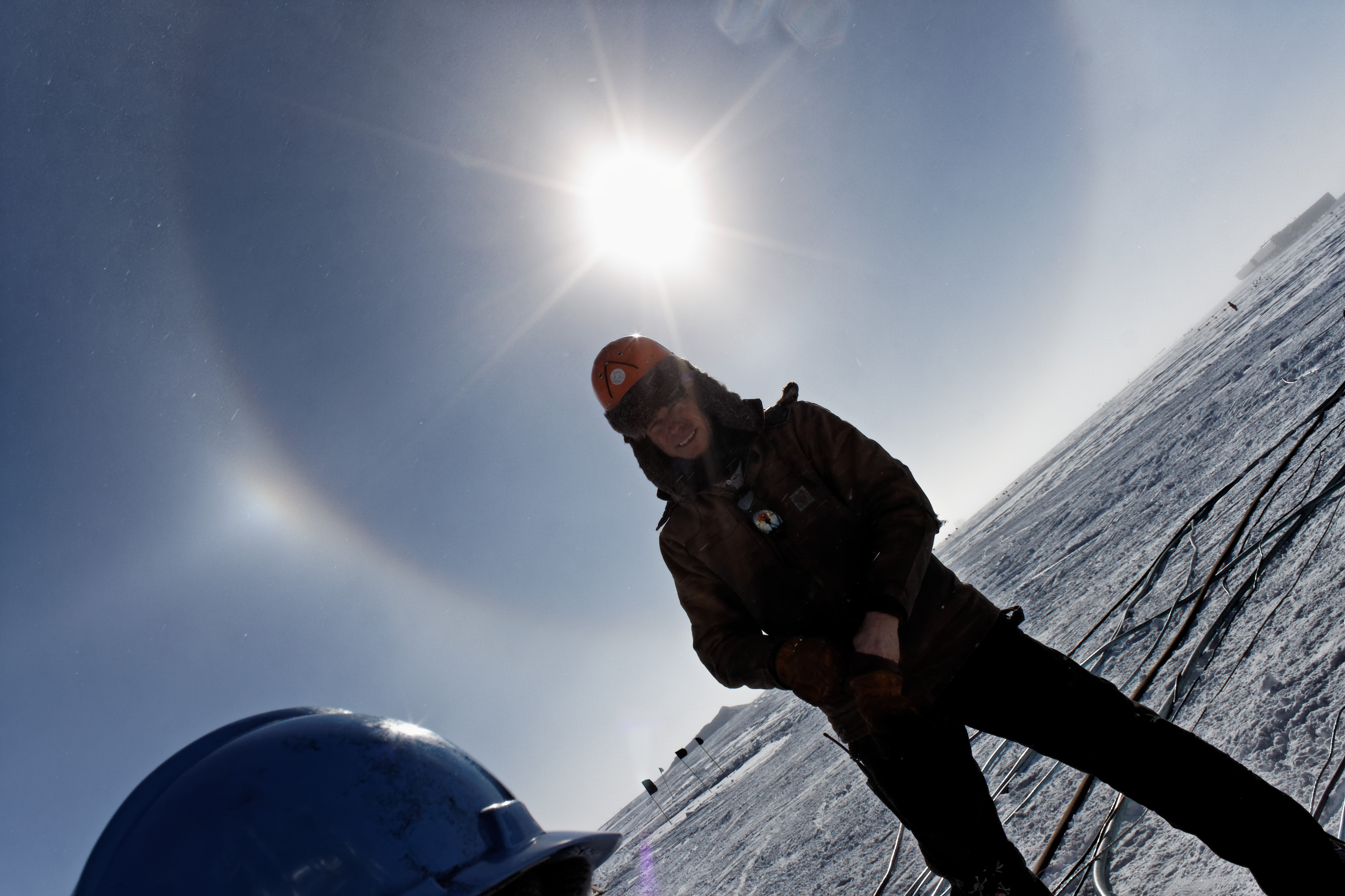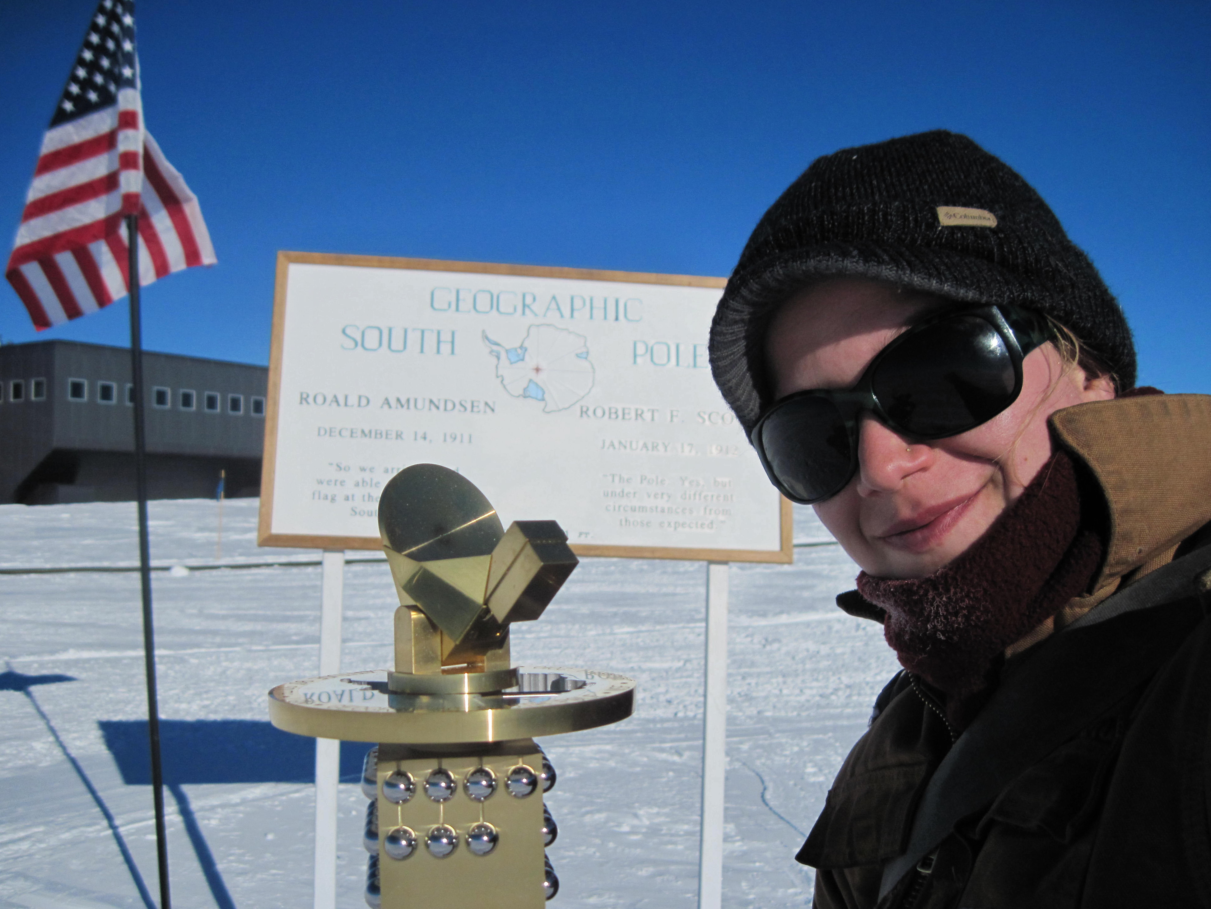 Sarra, Kiell and Rachel at the Ceremonial South Pole.