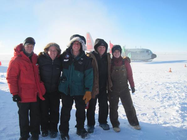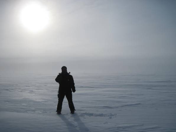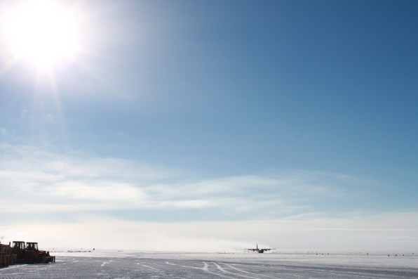 I’m not generally excited about airplanes, but at Pole for some reason I felt this little-boy awe and excitement at each first visual, landing, and during takeoff. But my favorite thing about working with Fuels was checking the skiway every morning to ensure it was safe for the day’s aircraft to land—riding the snowmobile a few miles out and looking for debris and downed runway flags. On a clear day I could see the endless horizon, the sun reflecting brightly off the windpolished snow, the station far, far away. And on a windy day I couldn’t see the station and my radio wouldn’t work because of the distance, and despite the reassuring rumble of the snowmobile, handles warm and vibrating under my frozen thumbs, I got a little glimpse of the frozen, barren wasteland I’ve heard so much about, stepped foot on, lived in, but so rarely saw.