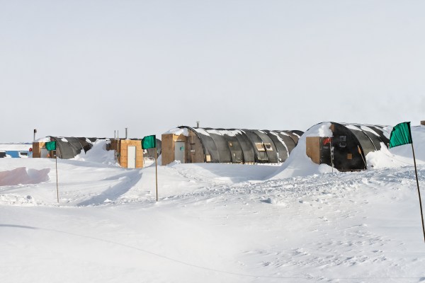 Over the winter season the Jamesways are closed (because who wants to sleep in a tent when the ambient temperature is -100F and the windchill is -150?) and the summer camp area drifts over with blowing ice crystals.