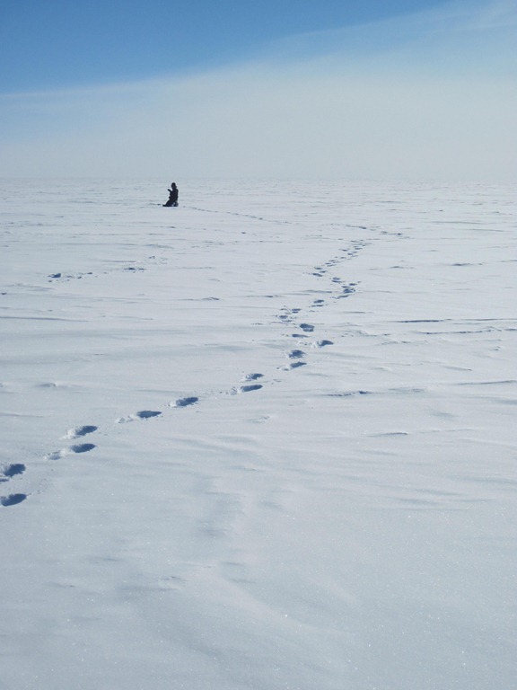 In the morning when the other campers started to wander around, I awoke to the sounds of footsteps, deep, resounding creaky screeches in the snow, and a creak-creak-creak-FWOOMP as someone compromised the structure of the ice shelf beneath them and the whole ground shifted a bit.