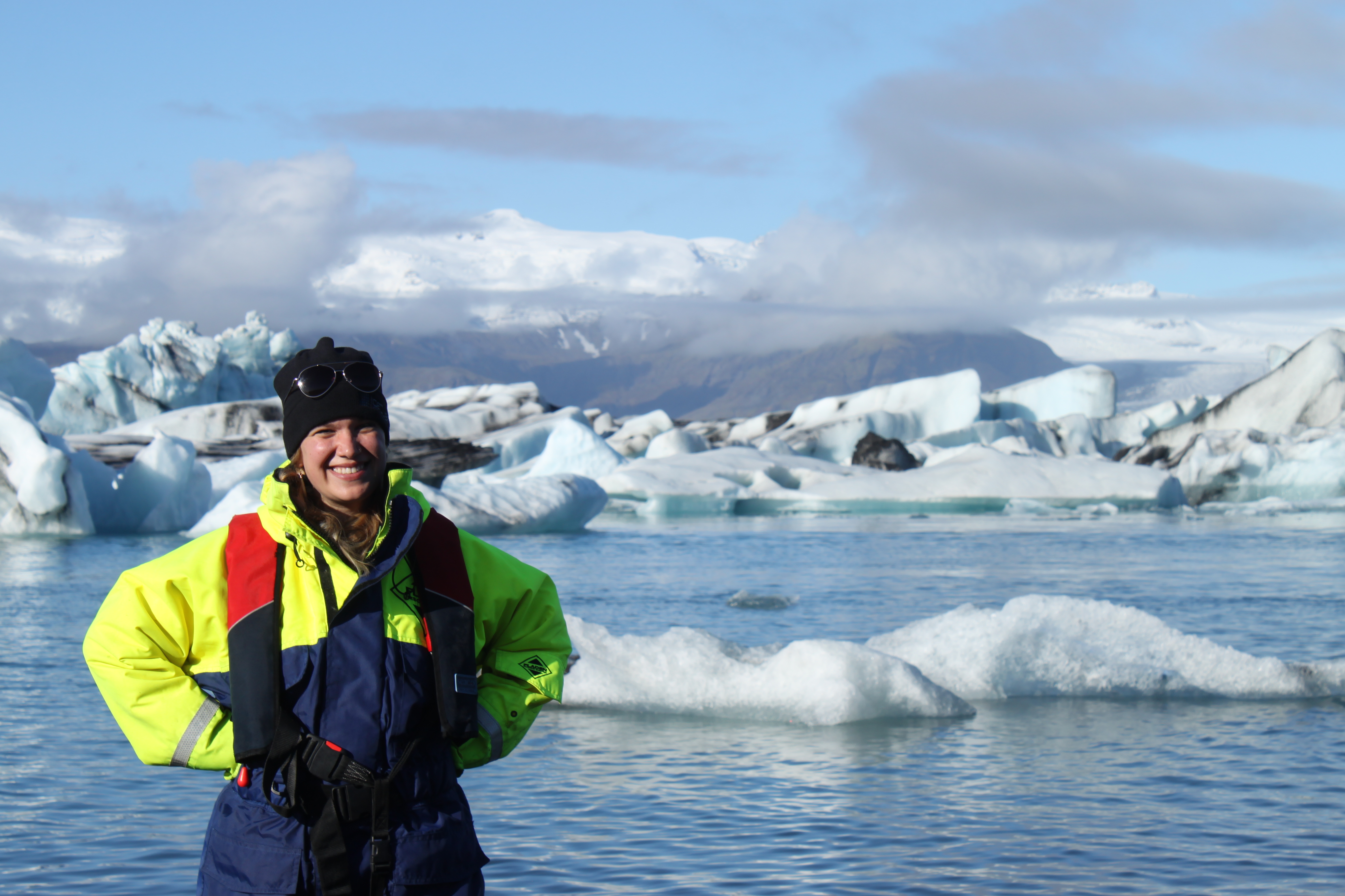 I bought a spot on a zodiac boat and motored out to the edge of the glacier, the air growing sharply cooler the closer we got. We were zipped up in waterproof coveralls, kneeling on the floor of the boat which was rubber like the sole of a shoe. Every now and then there was a sudden underboat jerk and a drag of ice along our kneecaps. The sun had come out and water was dripping off the ledges of vaulted ice, the spray salty, everything glittering and moving imperceptibly.