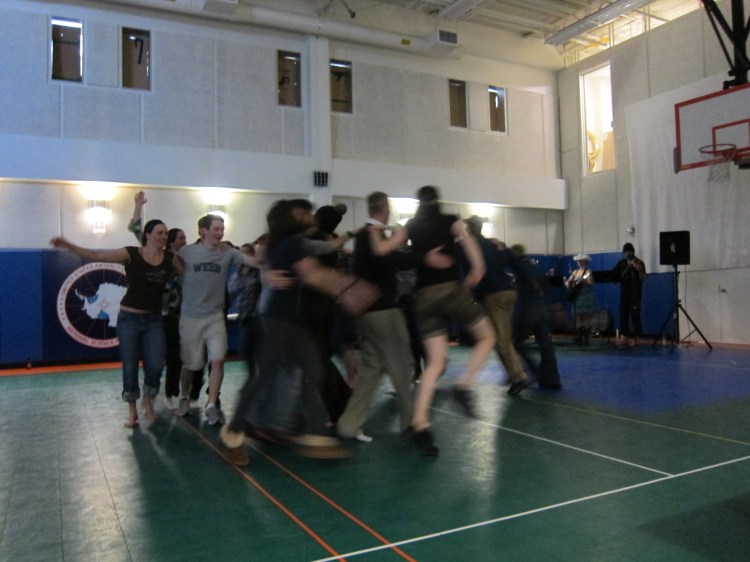 me: In the summer (now) there are about 250 people–scientists and the people they need to support them, like me. In the winter, there are about 45 people.