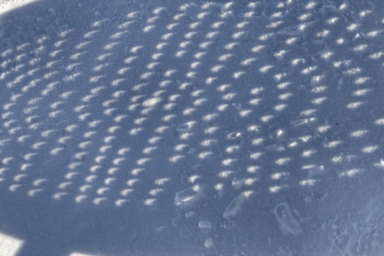 In the morning when the other campers started to wander around, I awoke to the sounds of footsteps, deep, resounding creaky screeches in the snow, and a creak-creak-creak-FWOOMP as someone compromised the structure of the ice shelf beneath them and the whole ground shifted a bit.