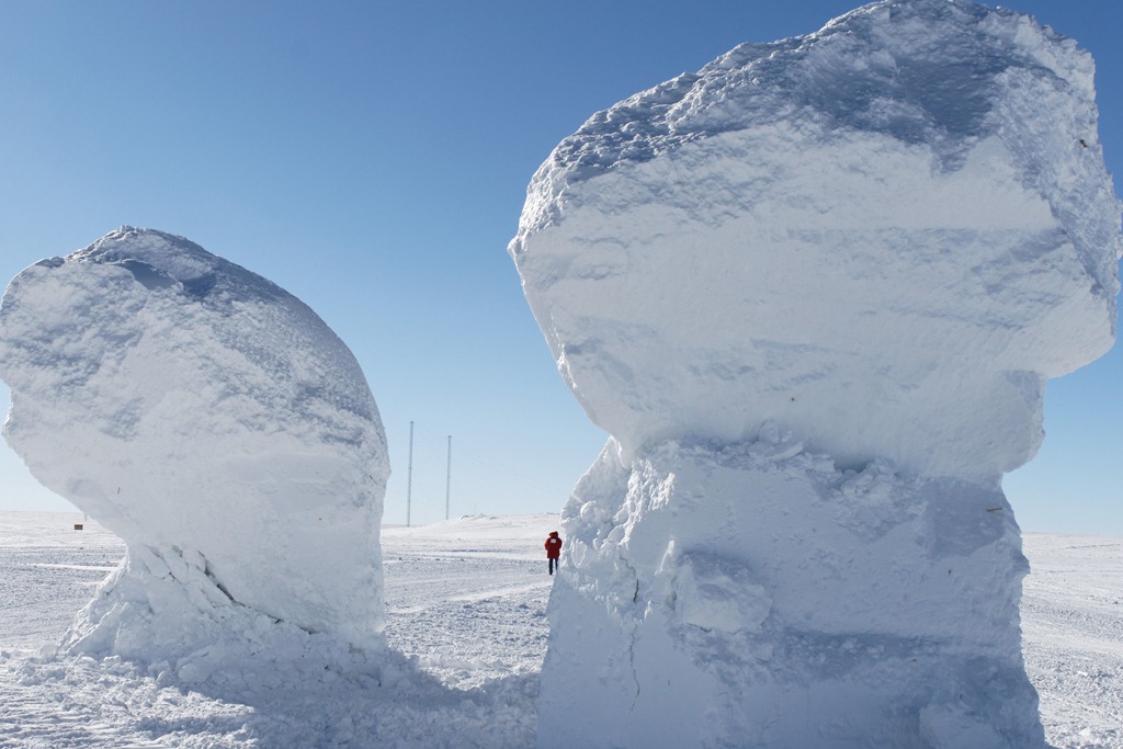 And when they get cleared, they get spread out downwind of station in the sector known as the End of the World. Snow gets bulldozed all season, piled up in all sorts of places, dumped into a big metal vessel called White Trash, and dumped where it won’t blow back. This is a never-ending process; Fleet Ops is here plowing all summer season long. I can hear them right now. Last week there were no less than four loud, geriatric tracked loaders clattering and rumbling and shivering outside my canvas wall as I tried to go to sleep one night. It’s hard here because the work has to be done, loud as it is, and there are people sleeping in shifts around the clock, both on station and in summer camp. But the boulders were just for fun!