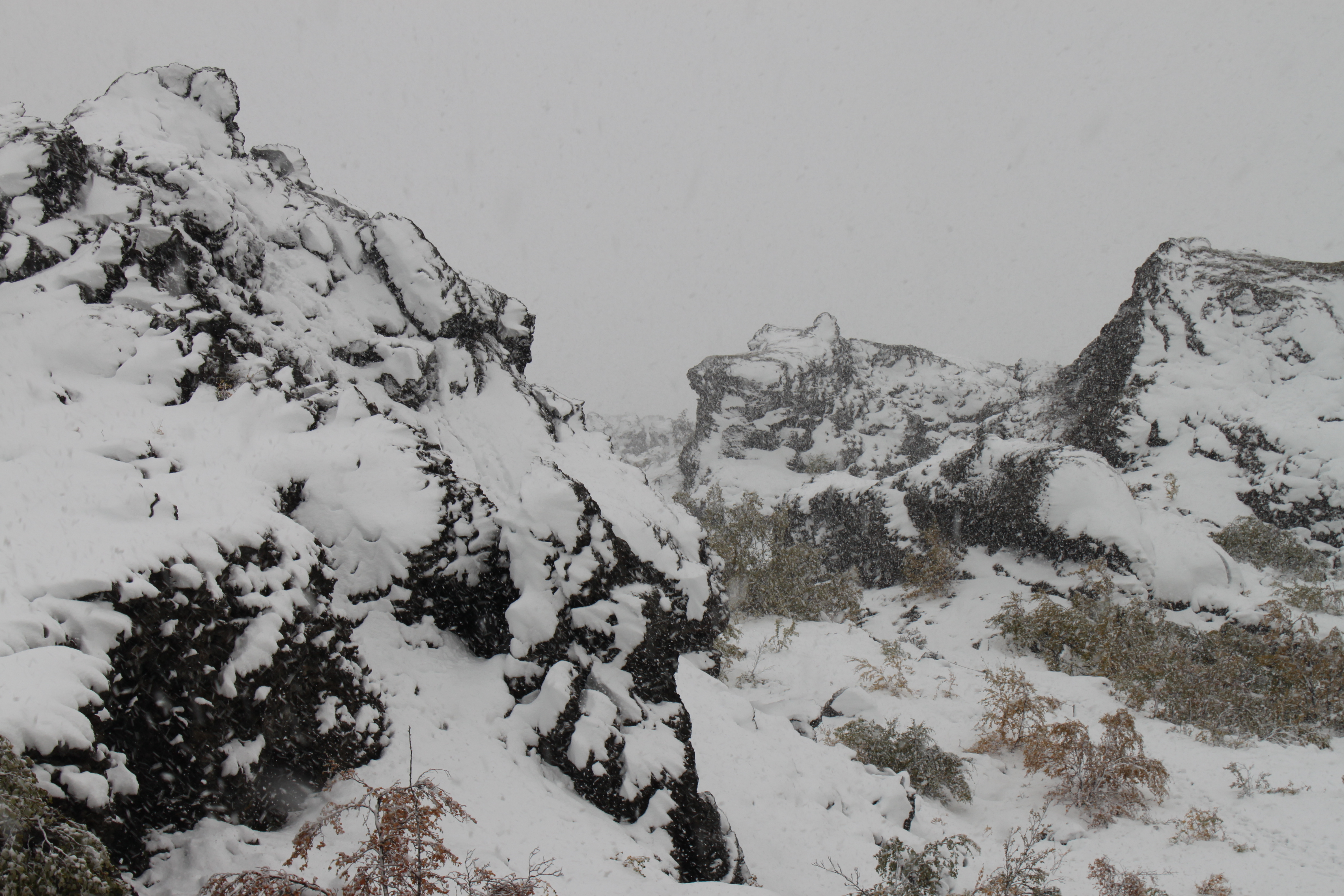 On the first day of calm skies, it was time to leave. I caravanned through flat open fields and mountain passes with a sweet Canadian couple. The roads were still quite icy, and the drive was beautiful but frightening. Lava formations encrusted in ice watched us drive like frosty prairie dogs waiting for the danger to pass.