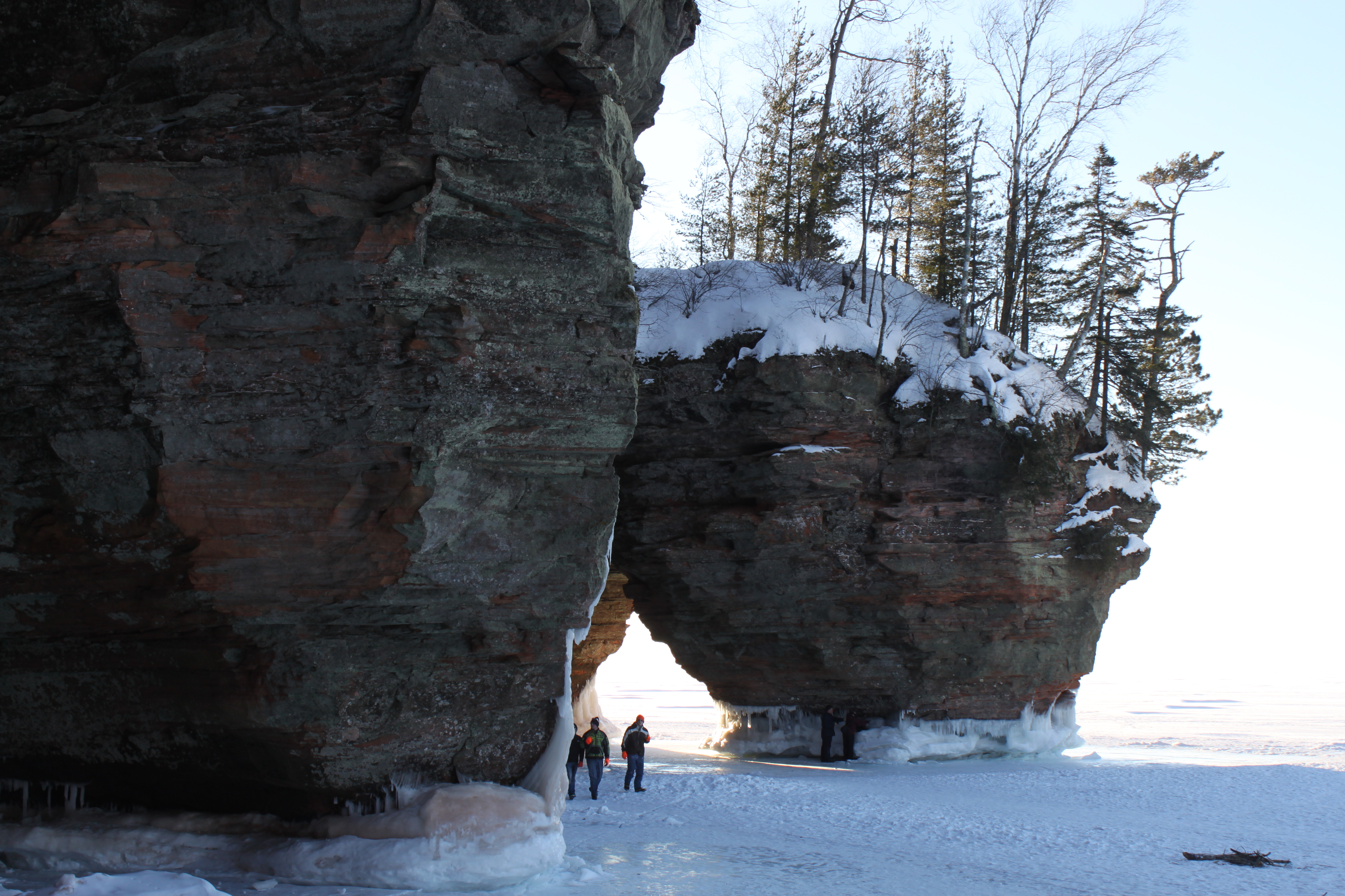 With that terrible cold came some terribly beautiful ice. Because of the weather, Lake Superior froze solid enough to allow visitors to walk to the Apostle Islands Ice Caves for the first time in a few years, and they were stunning. Red sandstone caves, striated arches, dangling exposed tree roots; they were all covered in ice whipped up by the bitter lake wind.