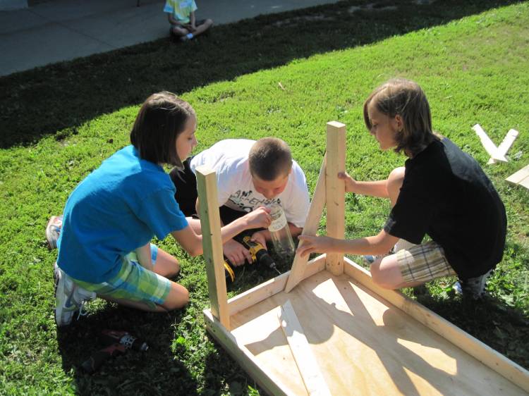 We start on Monday morning with a few puzzle pieces laid out for the kids, get to know each others’ names, go over safety (basic safety and also use of specific tools).